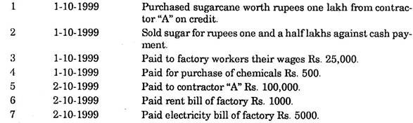 For example the following transactions took place in a Sugar Factory’ on 1st and 2nd October, 1999: